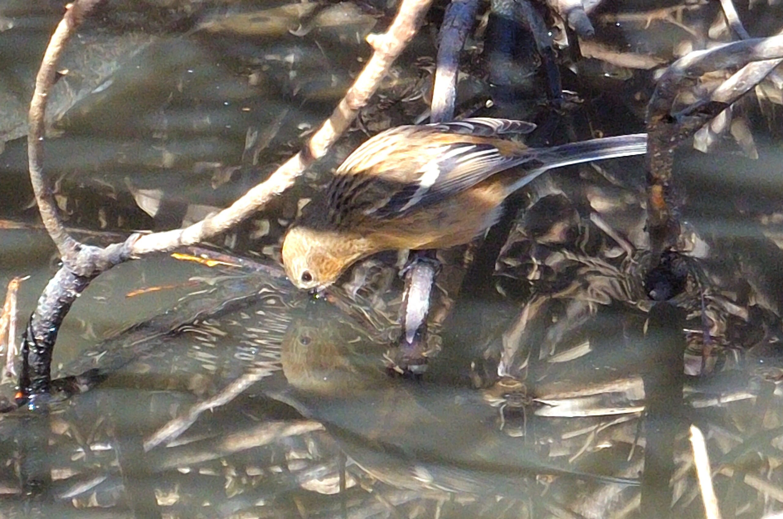 体の小さな鳥なので見つけるのが大変ですが、1月の観察会では、貯留池で採餌と給水をしている場面に遭遇しました。