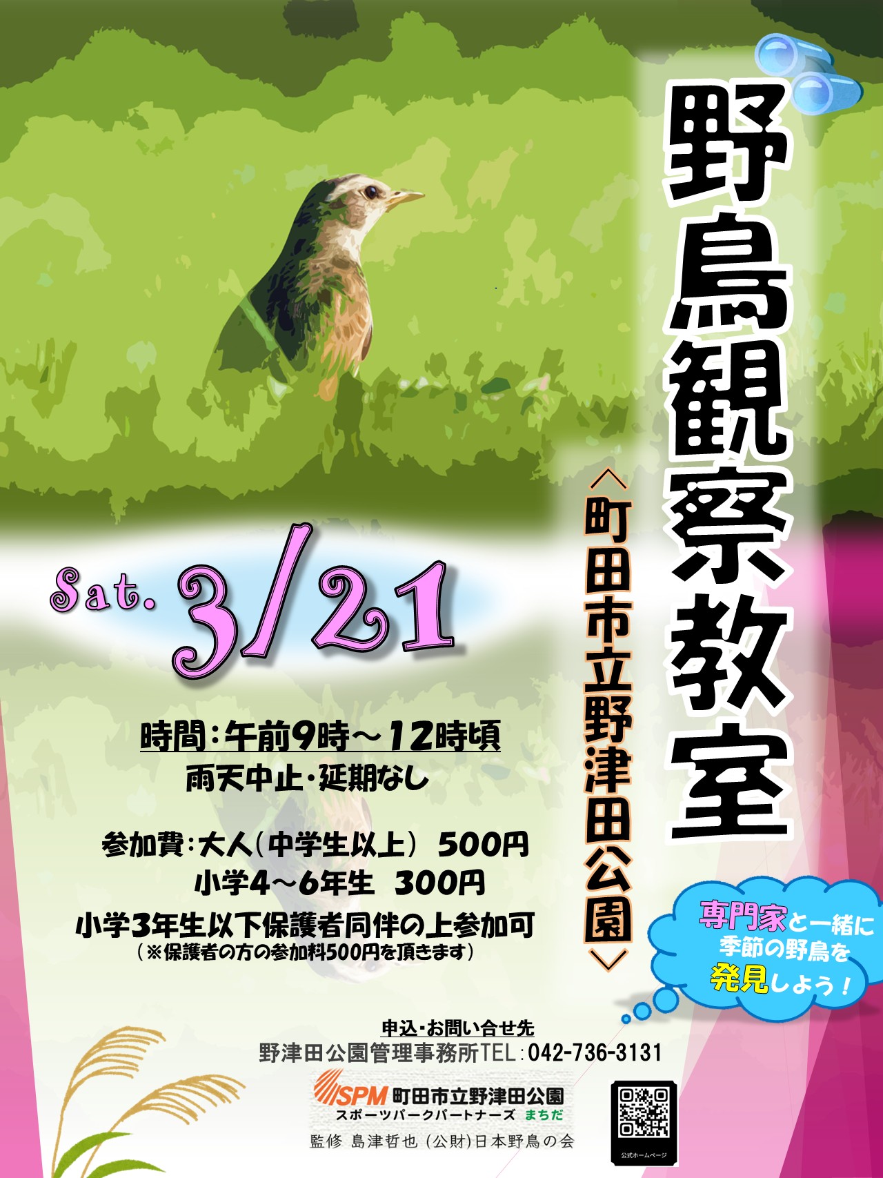 野津田公園に生息する野鳥たちを一緒に観察しませんか?